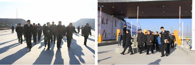 在保稅物流中心卡口上方"青海曹家堡保稅物流中心"以中英文兩種字體呈現(xiàn),海關(guān)標(biāo)識(shí)赫然醒目。王黎明副省長(zhǎng)一行在實(shí)地查看了1#、2#保稅倉(cāng)庫(kù)、卡口、查驗(yàn)庫(kù)、辦事大廳等設(shè)施,并邊走邊聽(tīng)取物產(chǎn)集團(tuán)總經(jīng)理王玉輝關(guān)于工程施工進(jìn)展情況的匯報(bào)。