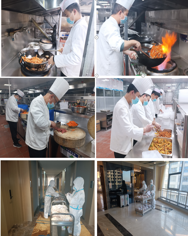 “疫情防控工作專班及高速卡口工作防疫逆行者們不顧危險(xiǎn)奔赴一線,我們當(dāng)仁不讓為他們保障后勤!”每一位職工服從公司統(tǒng)一指揮,堅(jiān)守自己的工作崗位。每天凌晨3點(diǎn),廚房里就開始熱鬧起來了,切菜、掂勺、出鍋、裝盒……廚師們戴著口罩、帽子、手套,“全副武裝”地站在操作臺前,有條不紊地開始為“最美逆行者”每日三餐忙碌準(zhǔn)備,保障防疫逆行者們在酒店期間能安心食宿。