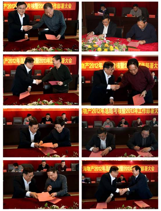 會(huì)上,由集團(tuán)總經(jīng)理王玉輝與所屬各公司、集團(tuán)各部簽訂2013年經(jīng)營業(yè)績目標(biāo)責(zé)任書,由集團(tuán)黨委書記白家林與所屬黨委(總支)、直屬黨支部簽訂黨建工作目標(biāo)管理責(zé)任書、與所屬各公司法定代表人簽訂黨風(fēng)廉政建設(shè)責(zé)任書。